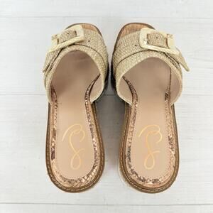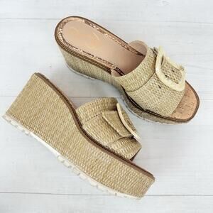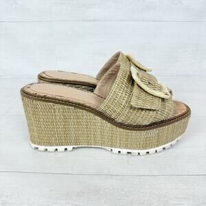 Sam Edelman Women Size 9 Livi Wedge Sandal Natural Raffia Boho Beach Beige