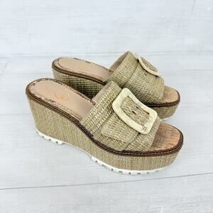 Sam Edelman Women Size 9 Livi Wedge Sandals Natural Raffia Boho Beach Beige