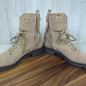 Sam Edelman Womens 8.5 Jennifer Boots Studded Combat Tan Suede Zip Ankle