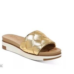 Sam Edelman Women's Adaley Slip On Gold Woven Sandals, 1” White Platform, Size 9