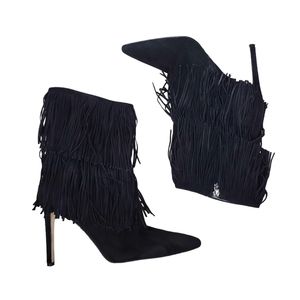 Sam Edelman fringe suede heel boots in black. Side zip closure. Suede leather upper. Pointed toe. Boho western rodeo. No stains or holes.