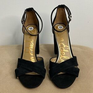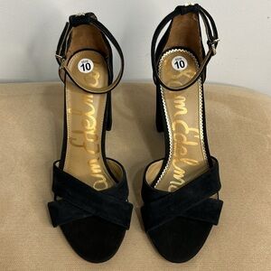 Sam Edelman Women's Black Suede Shoes Strappy Size 10 Chunky High Heels