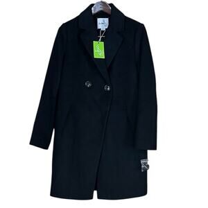 Sam Edelman Womens Black Wool Blend Double Breasted Cutaway Coat Size Small NEW