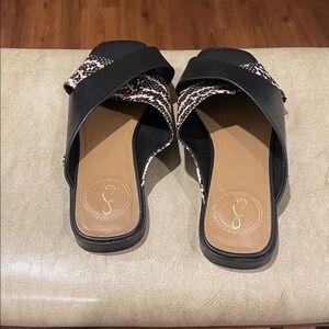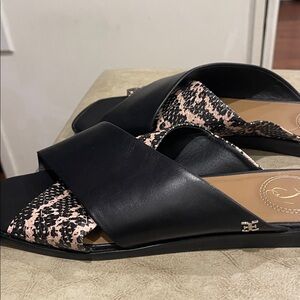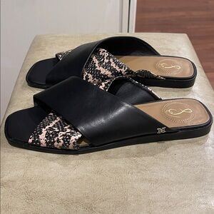 Step out in style with these chic black and pink slide sandals. Perfect for any casual outing.