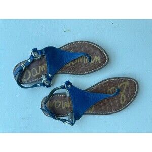 Sam Edelman Women's Blue Greta Leather Thong Strap Slingback Flat Sandals 8.5 M