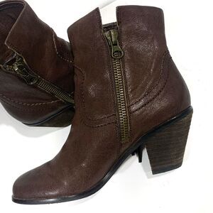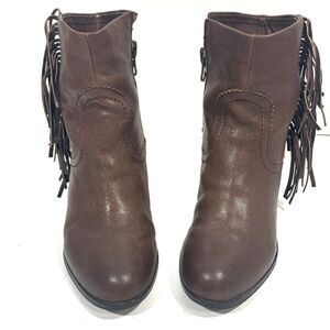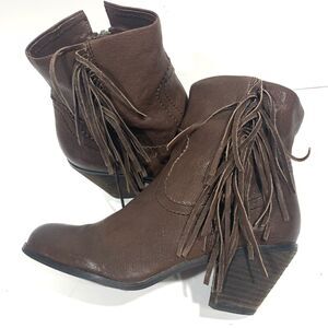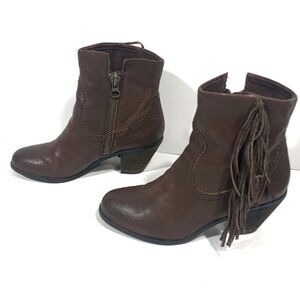 Sam Edelman Womens Brown Leather Louie Fringe Ankle Stacked Heel Boots Size 7.5M. Great condition!