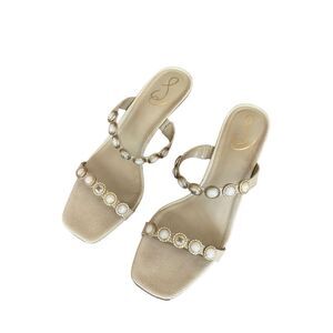Sam Edelman Women's Cream Pearl Embellishment Palma Kitten Heels Sandal Size 10