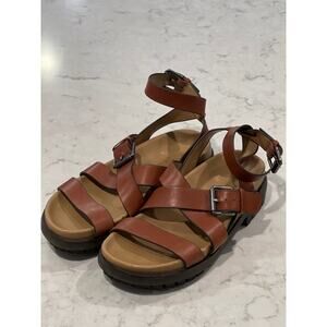 Sam Edelman Women’s Eleanora Leather Lug-Sole Ankle Strap Sandals Size 6.5 Brown