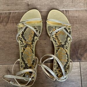 Sam Edelman Womens Ellina Gold Leather Strappy Flat Open Toe Sandal Sz 6.5 NEW