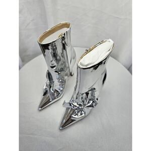 Dazzle in the Sam Edelman's Esmae2 Silver Bow Booties .This mirror silver bootie commands attention, while the brilliant bow adds feminine charm. A 3" heel completes the eye-catching design. Refer to images for measurements.