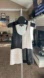 Measures 20 inches pit to pit and 27 inches shoulder to hem A sleeveless tank top featuring a rounded neckline and an asymmetrical color-block design in black and white.