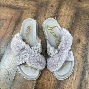 Sam Edelman Women's Fur Slide Sandals - Gray Size 10