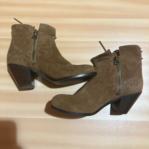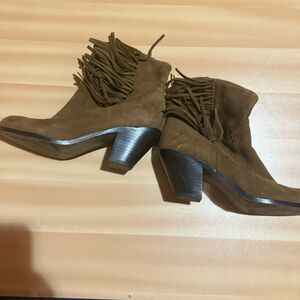 Sam Edelman Womens Heel Boots 7.5 M Brown Louie Zipper Short Fringe Shoes