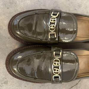Loafers with a sleek, shiny finish and a classic buckle accent - perfect for business casual looks and a dressy dinner!