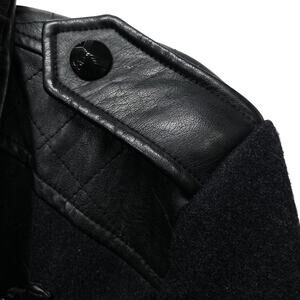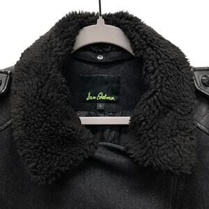 Sam Edelman Womens L Black Wool Blend Asymmetrical Coat Faux Leather Trim Jacket
