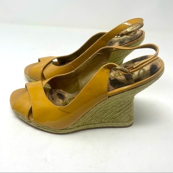 Add a pop of color to your summer wardrobe with these Sam Edelman Leather Espadrille Sandals! Featuring a chic sling back design and stylish wedge heel, these sandals are perfect for both casual and dressy occasions. The open-toe design and combination of orange/tan colors make these sandals a must-have for the warm months ahead.