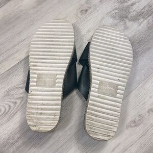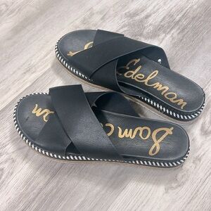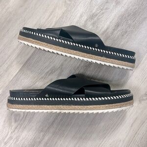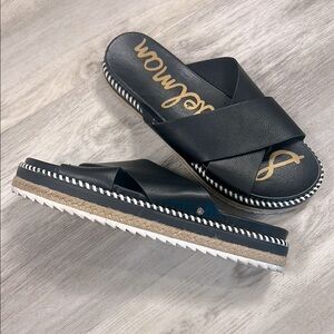 Sam Edelman Women’s Leyton Black Leather Platform Slide Espadrille Sandals / 7