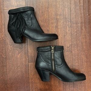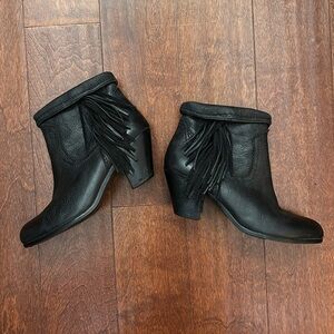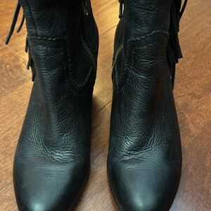 Sam Edelman Women’s “Louie” Fringe Booties with Fringe, Black Leather, Size 9