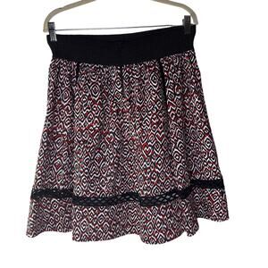 Sam Edelman Women's Medium Skirt A Line Red Black Geometric Pattern Midi Twee
