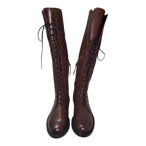 Sam Edelman Women's Nance Tall Lace Up Leather Boots Brown US 6 M