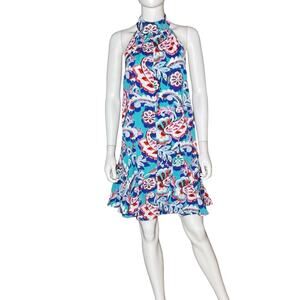 Sam Edelman Women's Oversized Paisley Print Halter Dress Blue Multi Sz 12 NWT