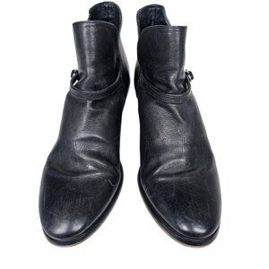 Tags: ankle boots, black boots, leather boots, Sam Edelman boots, women's boots, size 7 boots, professional boots, buckle detail boots, low heel boots, fall boots, slip-on boots, stacked heel boots, classic boots
