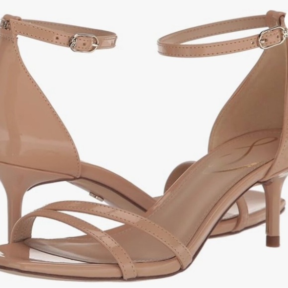 Sam Edelman Women's Peonie Kitten Heel Sandal Beige Blush Patent Leather 9.5