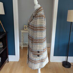 Sam Edelman Women's Plaid Wool Blend Coat Double Breasted Brown And Blue