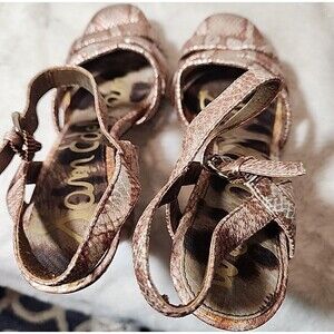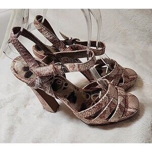 Sam Edelman Womens Shoes Strappy Platform Heels Sandals Snake Print Size 6.5