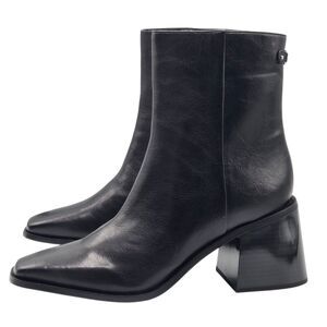 Sam Edelman Women's Winnie Fashion Black Leather Ankle Boots Block Heels 9M
