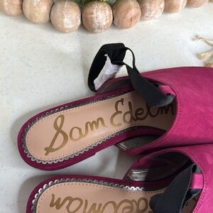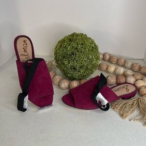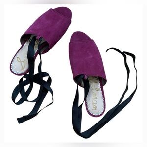 Sam Edelman Women's Suede Leather Theodora Mules with ties Magenta Sz 8.5