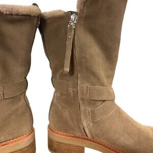 Sam Edelman Womens Suede Mid Calf Side Zip Winter Fur Lined Boots Brown sz 8
