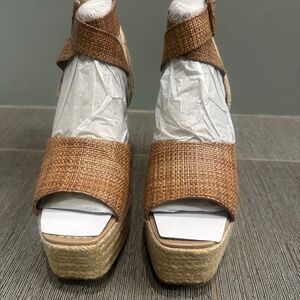 BNIB~NEVER WORN~The Sam Edelman Women's Vada Tan Platform Sandals in size 7 are a stylish and trendy addition to any summer wardrobe. With a high heel and platforms, these sandals provide both comfort and fashion-forward style. The Cuoio Weave color adds a touch of sophistication, while the buckle closure adds a trendy and chic detail. Made from all man-made materials, these sandals are perfect for the fashion-forward woman looking to make a statement in their footwear. *ALSO AVAILABLE IN BLACK LINEN~ SEE MY OTHER LISTINGS!*