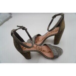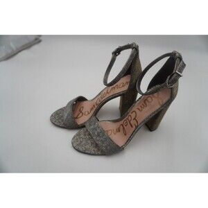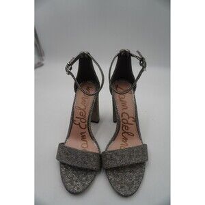 Sam Edelman Women's Yaro Silver Metallic Ankle Strap Open Toe Block Heels Sz 8 M