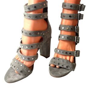 Sam Edelman Women's Size 7.5 M Gray Suede Leather Studded Caged Ultra High Heel Sandals Open Toe New