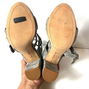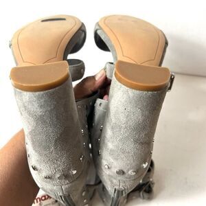 Sam Edelman Womens 7.5 M Gray Suede Studded Cage Ultra High Heel Sandal Open Toe