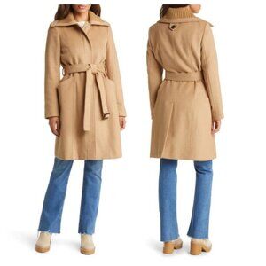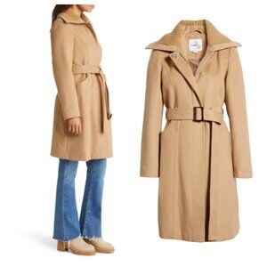 Sam Edelman Wool Blend Rib Collar Coat In Camel
