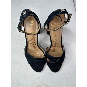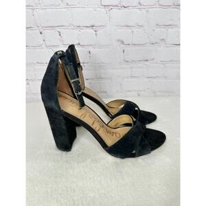 Sam Edelman Yancy Ankle Strap Sandals Black Suede Womens 11 Shoe Heels