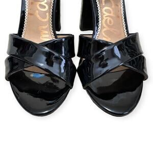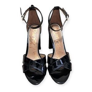 Sam Edelman Yancy Black Patent Leather Ankle Strap Block Heels Women's Size 9