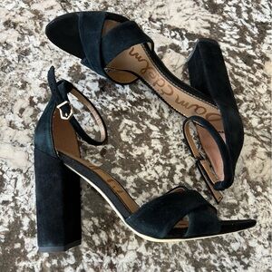Sam Edelman Yancy Black Suede Ankle Strap Peep Toe Block Heel Sandal Size 9.5M