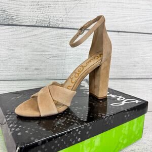 Sam Edelman Yancy Cream Suede Block Heel Ankle Strap Sandal Size 10