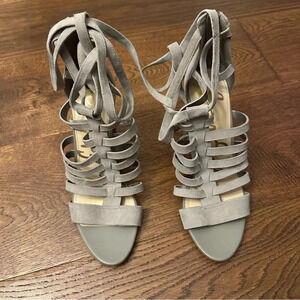 Sam Edelman Yarina Suede Laceup Block Heel Size 8 taupe