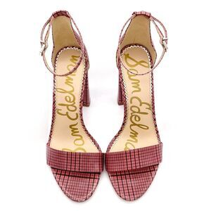 Sam Edelman Yaro Block Heel Ankle Strap Sandal Warm Pink Plaid Women’s Size 8.5