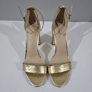 Sam Edelman Yaro Block Heel Sandal Women 11 Gold Snake Embossed Metallic Evening