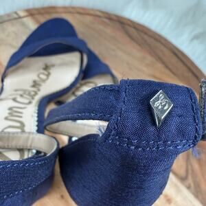 Sam Edelman Yaro Block Heel Sandal Womens 8 M Blue Suede Open Toe Ankle Strap (Runs 1/2 Size Small)