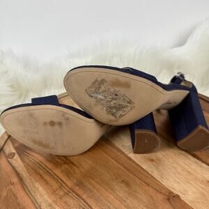 Sam Edelman Yaro Block Heel Sandal Womens 8 M Blue Suede Open Toe Ankle Strap