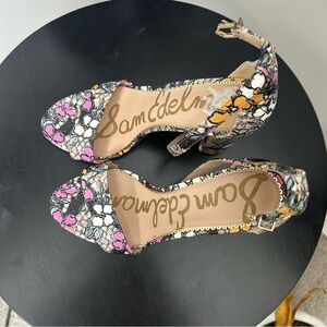 Sam Edelman Yaro Grey Black Snake Print Floral Block Heels