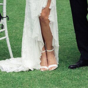 Sam Edelman Yaro Heel in Bright White - size 9. Worn for one night and one night only - my wedding! Actually worn for about 5 hours, eventually I changed into some sparkly boots. These are in excellent condition and have been cleaned as well. There is one tiny scuff on one of the front toe areas (see pic).