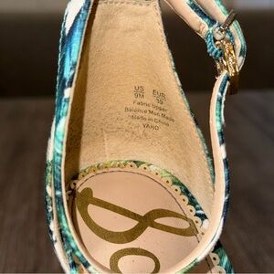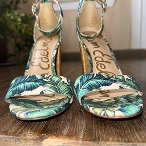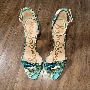 Sam Edelman Yaro Palm Print Block Heel Sandals Women’s 9 Hawaiian Tropical Woven