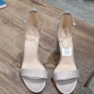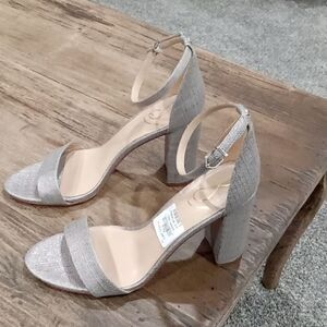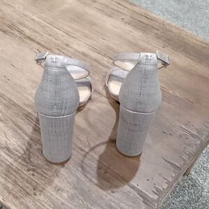 Sam Edelman "Yaro" dark silver Jute fabric 4" block heel, round open toe sandal ,size 11 NWT. Adjustable ankle strap with buckle closure.
